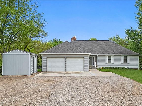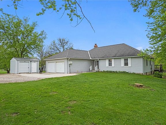 Lovely, recently renovated Ranch on acreage. New Air Conditioner & Water Heater in 2024. Newer Furnace. New Dishwasher, Sink, Granite Counter tops, Tile and Carpet in 2024. Enjoy 2 out buildings with electricity for hobbies and projects. There is a fenced 70 x 80 garden area just waiting for you to plant flowers or vegetables. Also a Blackberry Patch, Asparagus patch, Onion patch and Pear & Apple trees. This home is ready for you to move in and enjoy country living at its best. Just minutes from 169 highway with easy access to Olathe, Gardner and Overland Park. Ranch homes on small acreage are very rare. It's a must see!