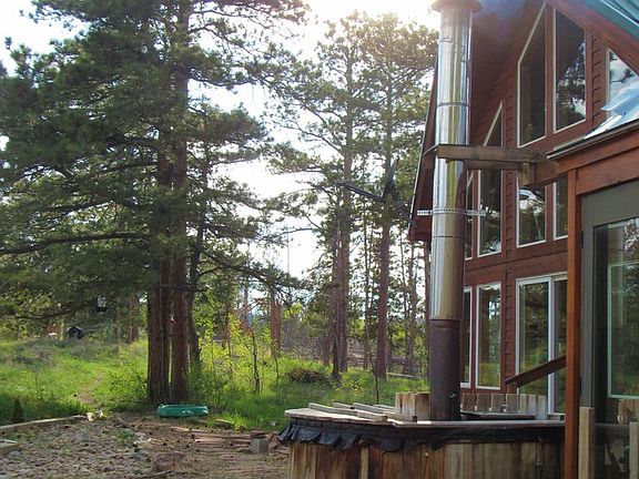 35 wooded acres with custom home adjacent to National Forest!! This 3 bd and 2 ba home has vaulted ceilings and picture windows which give a great ambiance, making you feel as if you are a part of the land outside. Large decks surround the home and lead to a small green house and a wood fired hot tub. The lower level of the home has a large wood burning stove and a steam sauna. This home is fully solar and is being sold with all panels and batteries. Improvements in satellite internet allow streaming video and working from home. Cell phone booster antenna ensures reliable reception. Large pond, chicken coop, and loafing shed.