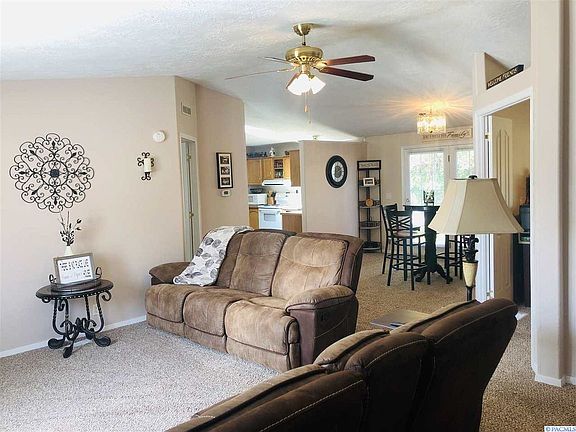 Enjoy the great floor plan and vaulted ceilings in this updated home. This home sits on a private 1.40 Ac. lot. The fenced pasture is ready for your animals. You will enjoy the views from the back deck overlooking the beautiful green pastures. Large decks in both front and back of the home. The 40x60 shop is older, but has its own separate meter and 200 amp service and lots of storage shelves. The shop also has a 12 ft door for large vehicles. Besides shop there is a 2 car carport. The property has a newer well pump and all sprinklers are on timer. The home has 3 bedrooms plus a large office. The split bedroom design and large Living room/dining room add to the homes appeal. You will love the light and bright feel of the home with the newer skylights in kitchen and master bath. Off the kitchen you will find a dinette area and laundry room with space for an upright freezer. Most flooring updated in the last 2 years. Home had a new roof put on in 2017. Also the A.C. Unit was recently replaced. Seller is including the fridge,microwave and washer/dryer for your confidence. Seller is a licensed realtor.