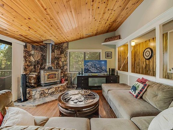 Immaculate, Prestine, Turn-Key Ready. This beautiful 4 bedroom, 3 bath home comes fully furnished and can comfortably sleep 10. With two living rooms, both with wood burning stoves, & a bonus room, there's room for everyone. AirBnB potential or In-Law quarters as every level has it's own entrance. The large kitchen island with built-in range will be the place for gathering & buffet type spreads. The crown jewel is the trex decks with spectacular views of the mountain & valley. Wildlife abounds with regular sitings of various birds, bears, squirrels, foxes, mountain lions & deer. Seller states when it snows & all window coverings are open, it feels like being in a snow globe. Roof is 5 years new. BLM land just 100 yards from the house where you can walk, bike, & ride your ATV's. Don't wait, call for your appointment today.