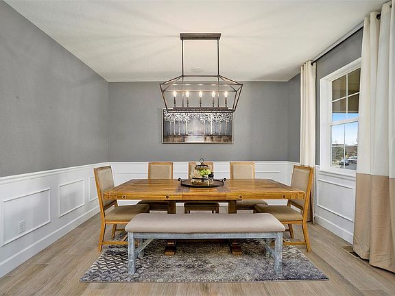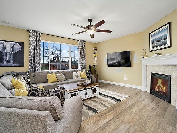 Welcome to this beautiful, upgraded, well maintained Richmond Hemingway in The Conservatory with mountain and prairie views! The front porch welcomes you into a beautiful dining room and upgraded tile flooring throughout the main level. The large living room has a cozy tile fireplace with mantle and large windows for ample light. The extended gourmet kitchen with eat in dining space features granite countertops, large island with farmhouse sink, upgraded cabinets, custom backsplash, and black stainless appliances. Upstairs features a master retreat with a beautiful master bath with double sinks, quartz, large shower and walk in closet. Additionally, there are 3 more bedrooms, all with overhead lighting, a grand loft with mountain views and the laundry room with storage, as well as a well-appointed guest bath. The fenced backyard, backing to open space features a composite deck, additional patio, perfect for dining or a future hot tub The basement is roughed in, ready for your finishes.