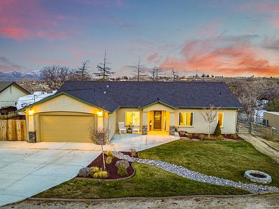 This charming semi-custom single story home is nestled in the peaceful Tehachapi Golden Hills West area, offering a serene and tranquil lifestyle. As you step inside you're greeted by a spacious living room with tons of natural light that floods the room, creating a warm and inviting atmosphere. The open floor plan seamlessly connects the living area with the dining room and kitchen, making it perfect for entertaining guests or spending time with family. The kitchen boasts ample cabinet space, stainless steel appliances & granite counters. The sliding glass door just of the kitchen leads out to a covered patio where you can relax and enjoy the breathtaking views. The home features 4 bedrooms, each with their own unique charm. The primary bedroom comes complete with walk in closet and en-suite bathroom. Rounding out this home is (2) RV parking areas, both with a 30 amp breaker, chicken coop for those who enjoy fresh eggs and a play set for the little ones. This split floor plan home sits at the end of a cul-de-sac and offers many upgrades. Don't miss the opportunity to own this rare gem and make this your forever home!