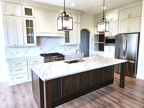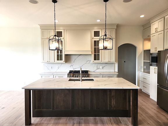 Just completed home in Timber-Hyrst. Ultra modern home with 3485' finished. This home is an awesome new rear walkout split bedroom design with 5 Bedrooms, 4 full Bath, 1 half bath and 3 car garage. Kitchen features Custom Kendrick Forever cabinets, wall and base cabinets are cream white, island is walnut, quartz tops and backsplash, hidden pantry and SS appliances. Other upgrades include 11' , 10' and 9' ceilings with treys throughout, solid core doors, Sprayed in place white trim, upgraded lighting package, gas fireplace w/custom built in cabinets, oversized windows w/transoms, Energy star mechanicals, stone front, tiled master shower, large covered maintenance free deck, lots of hardwood in Master Bedroom, Family Room, Dining Room and Kitchen, large laundry room w/entry lockers and much more. Lower Level is completly finished with 10 x 12 bar room, 17 x 29 family room , 2 bedrooms (1 is a suite w/private bath) Garden garage and lots of storage, LL Family Room and Bar room are LVP. It is located on a large walk out lot with trees and green space in the rear.