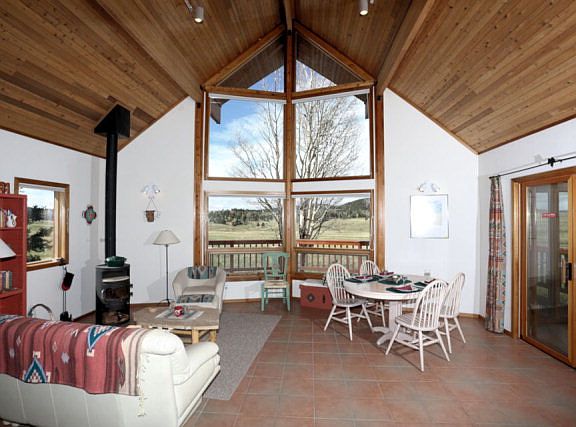 This mountain home sits on the edge of a meadow where hundreds of elk regularly browse. Elk come right through the yard. The home features a wall of windows to take advantage of the view of this meadow, the trees and the wildlife. The back side of the home has a hot tub room which has 3 walls of windows. It is almost like living in the great outdoors. If you like seeing pine trees, aspen trees, elk and deer, you will love this home.