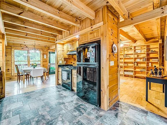 Truly one of a kind custom log cabin home that sits on 1.5 acres with so much privacy you will forget you are just 10 minutes to 515. The abundant natural landscaping is beautiful as you wind your way up the long paved driveway to ample parking in the drive, under garage or the kitchen level parking pad. Before entering this home pause to notice the lush landscaping that includes fruit trees, koi pond, stone patio around the fire pit, and walking paths winding through all the gardens. Once you enter this home you are greeted by the slate tiled floors in the kitchen that offers granite counters, solid wood cabinets and all black appliances are included. The kitchen easily flows to the open dining area and living room with beautiful all wooded shelves that could double as a guest sleeping area when needed. 2nd full bath is also located on main level for guests use. The upper level is the oversized master loft and offers a flex space that could be an office or sitting area, skylight above the bed to watch the starts at night, large walk-in closet is 10'x10' with the washer and dryer so doing laundry is a breeze. The master bath has a large walk in shower and jacuzzi tub large enough for two. This home is truly one of a kind and is just the right place for your own personal resort that is secluded in nature yet still offers the convenient location. Welcome home!