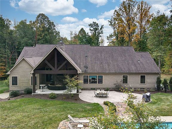 Welcome to 2091 Nimishillen Church St NE, located on a beautiful wooded lot in Lake Twp. This custom built Rembrandt Home is nestled on just over 8 acres with over 900ft of concrete driveway back to this private oasis. The exterior of the home features multiple gorgeous covered porches. The rear porch includes a floor to ceiling stone gas fireplace and tv area overlooking the in ground pool which includes an automatic cover and fire pit area. There is a 5 car garage attached with multiple doors on both sides of the home. Then the minute you walk through the front door, you are blown away with the breathtaking design and features of the home. The owners spared no expense with high end finishes throughout including all custom cabinetry, cherry trim and interior doors. The kitchen is like nothing you have seen before, just dreamed of. This 3 bedroom ranch is a split floor plan with the office (could be 4th bedroom) and the master bedroom on the east side of the house and the other two bedrooms with a Jack and Jill full bathroom on the other side. Off the garage, the mudroom features large locker built ins, a full bath with urinal, and the spacious laundry room that anyone would enjoy washing clothes in. The lower level walks out to back yard and includes gray washed ship lap on the walls and bar area perfect for get togethers. This property really is a jaw dropper and a must see to appreciate all the finishes. Make your dream a reality and make this one yours.