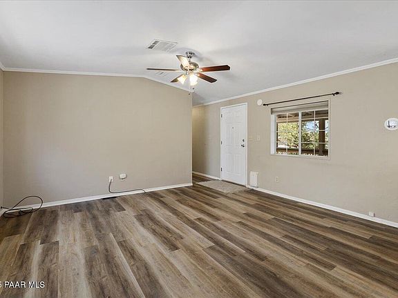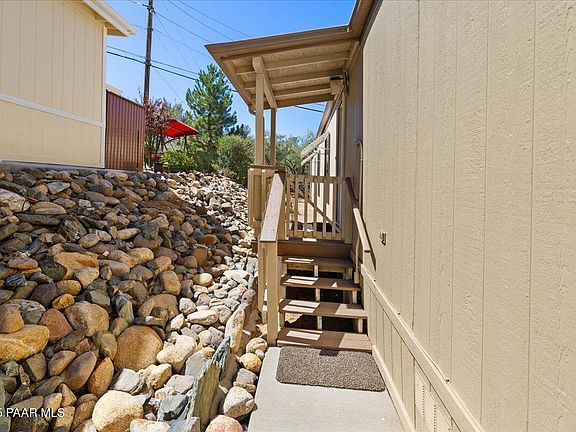 Nestled in the sought-after Prescott Canyon Estates, a vibrant 55+ community filled with amenities, this beautifully updated manufactured home blends comfort and modern style. The welcoming front exterior features fresh paint and a well-kept appearance, setting the tone for what awaits inside. Step into the great room, where the open layout creates a seamless flow between living and dining spaces, perfect for everyday living or entertaining.The kitchen has been thoughtfully redesigned with granite countertops, stainless steel appliances, and a reconfigured layout that opens to the main living area, giving it a fresh and contemporary feel. The primary suite offers a peaceful retreat, complete with a newly renovated ensuite bathroom featuring a brand-new shower and a spacious walk-in closet. The secondary bedroom and updated guest bathroom, with its modern vanity, provide comfort and style for family or visitors.Additional spaces, including a convenient carport and storage shed, add functionality to the property. Outside, mornings are best spent on the covered deck or in the fenced backyard, which backs to open reservation land, offering privacy and the soothing sounds of nature. Life here is enriched by the community's resort-style amenities including pickleball and tennis courts, a heated indoor pool and spa, a clubhouse, gathering hall, and so much more.