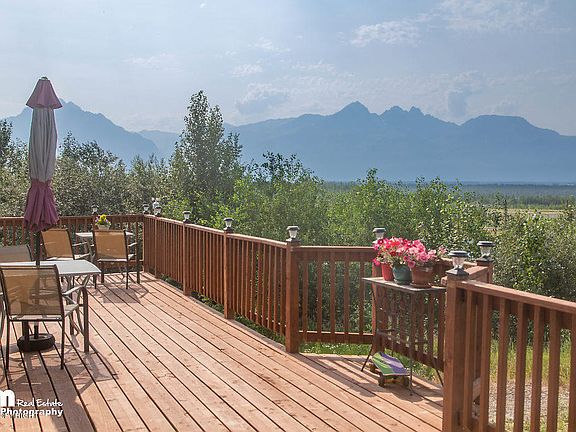 Phenomenal Commute Location with the Best view in the Valley. Near the Hospital and Machetanz Elementary. Has Colony schools. Kitchen Dining and Living rooms allow the amazing views to come in. Incredible Large deck to entertain on. Huge Yard to play in. Excellent large family room. All located at the end of road for privacy.
