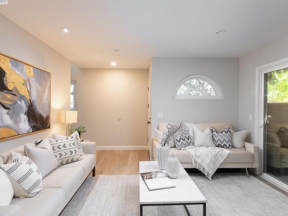 Perfect NE facing, fully upgraded home in Mountain View, close to Google, Apple, and the Shoreline Amphitheater. Must see to believe! First floor unit with 2 bedrooms and 2.5 bathrooms, a cozy living room with fireplace and french doors leading to lush green patio that opens up to community outdoor space perfect for walking a dog or playing with your kids. Beautifully remodeled with brand-new LVP floors, carpet, recessed lighting, light fixtures, fresh paint & much more throughout. The kitchen features chic quartz countertops with a breakfast bar, stainless steel appliances, stunning white cabinets, and a full tile backsplash. Newly remodeled bathrooms feature brand new vanities with white cabinets. Primary bathroom has an amazing spa-like feel. Bedrooms feature custom walk-in closets with a laundry room conveniently located right down the hall on the second floor. Great access to Silicon Valley and beyond; close to 101, El Camino, 280, and Caltrain. Don’t wait—this one is going to go fast! Open Sat 9th and Sunday 10th from 1 PM to 4:30 PM.