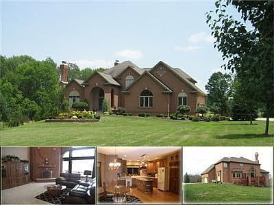 Among Sugarcreek Twp's Finest w/5 ac. of privacy! Featuring 2 acres of frontage, a tree-lined private drive. Notice ornate brickwork & a spacious 5,600sq. open floor plan. The entry offers hardwood floors, Study, Formal Dining & the Family Rm w/ magnificent views of the rear yard from the wall of windows & handsome brick hearth! The Kitchen also offers panoramic views, breakfast, island & planning desk. A 1st level Owner Suite boasts a tray ceiling luxury bath w/jacuzzi tub, walk-in style shower, dual-sink vanity plus a HUGE organized closet! Dual staircases access & 3 bedrooms upstairs! $80,000+ has been invested in the finished, walk-out basement with 37x16 recreation, 27x18 family rm with bar, fireplace & surround sound & 15x12 exercise room/pos bedroom or theater. 3 car/pos.-5 car tandem Garage w/storage. New Roof & Gutters Nov 2011! The yard offers a 2-car garage/pos stable! Award winning Bellbrook Schools. Country setting ~10 minutes to freeway + Wright Patt AFB or Downtown.