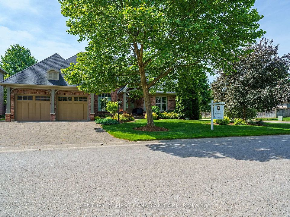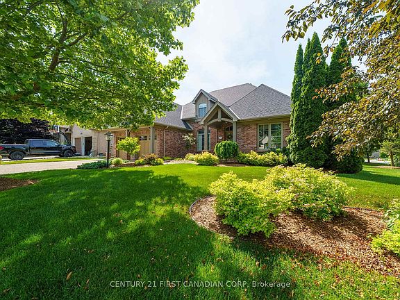 Located in the prestigious Sunningdale area of North London. Originally built as Bruce McMillian's model home offering many unique design elements rarely seen in homes of this caliber. Attractive curb appeal with professional landscaped gardens complete with irrigation system. The flagstone covered porch greets you as you enter into the warm and inviting interiors. The large main floor den features a custom wood ceiling treatment, a spacious formal dining room with separate wet bar for elegant entertaining. The open design great room with vaulted ceilings and custom fireplace overlooks into the enclosed tiled and screened in sunroom and patio to enjoy summer evenings. Built in speakers are integrated throughout the home. A european inspired kitchen with custom cabinetry, granite counters and island with breakfast area overlooks the massive great room. Walk-in pantry and heated flooring in the mud room, main floor laundry room and lower level bathroom. Enter into the main floor primary bedroom with it's own custom brick walled foyer and ceiling treatment adds to it's tranquility. There is also a main floor guest room that is ideal for multi-generational living. Upstairs you will find 2 additional bedrooms with a jack and jill bathroom and very large walk-in closets plus a cozy book library overlooking the great room and foyer. In the lower level you will love the separate theatre room with built in speakers with media equipment included, billiard and games room, exercise room, additional bedroom or office space, cold room plus an incredible amount of storage area. Shingles, furnace and central air have been updated within the last 3-4 years. This luxury home exudes warmth along with spacious interior spaces ideal for today's lifestyle!