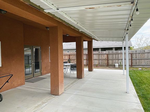This stunning real estate property boasts a beautifully designed patio that's perfectly sheltered under the roof line. In addition to this, the backyard has been enhanced with lush landscaping and concrete features, providing the perfect outdoor oasis. Inside, the vaulted and 9-foot ceilings create a spacious and airy feel. There's also a second patio cover for even more outdoor living space.