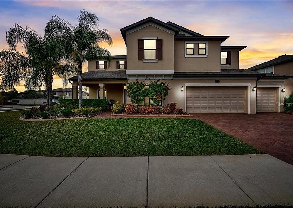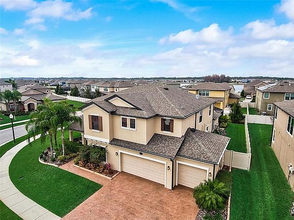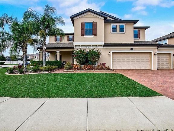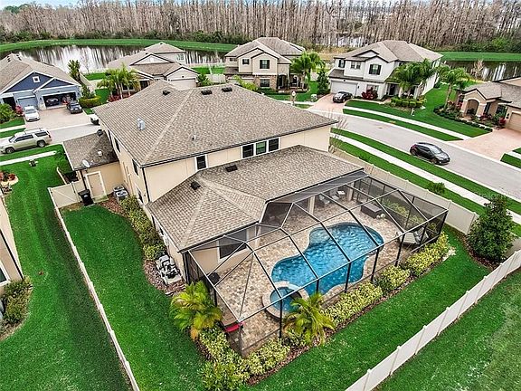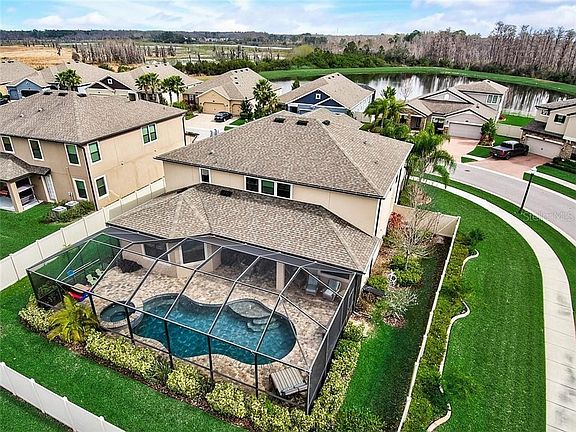 **SIMPLY STUNNING** Tucked away in the Long Lake Ranch Village community, this tastefully updated and lovingly maintained 6 bedroom, 4 ½ bathroom home is an absolute must see! Curb appeal abounds with lush manicured landscaping highlighting the corner lot and an attractively pavered driveway welcoming you home. As you enter the residence, you'll be greeted by an abundance of natural light and charmed by the attractive wood plank flooring, plantation shutters, crown molding, and recessed lighting that run throughout the first floor. The soaring ceilings and cascading stairway make for an impressive and grand introduction to this executive syle home, inviting you to absorb all the beauty it has to offer. The floorplan begins with a well sized office/sixth bedroom that features sliding barn doors for privacy. The formal dining room is located just off the entry as well, perfect for large gatherings. Open concept living shines as you continue forward into the expansive great room, making the home perfect for both entertaining and daily family life. The living area proudly features attractive custom built-in cabinetry along with oversized sliding glass doors that lead out to the screened lanai and pool area. The kitchen leaps from the pages of the latest design magazine and features a large island, attractive cabinetry, quartz countertops, stainless steel appliances with double wall mounted ovens, and a butler's pantry with convenient access back to the formal dining room. Also located just off the kitchen is a large, informal dining area with a custom banquette. Step into the covered patio and you'll be transported to your private backyard paradise highlighted by a large screened-in pool with a cascading waterfall from the spa and attractive pavers along the pool deck. The first floor owner's retreat is truly fit for both king and queen and features tray ceilings and a private, spa-like ensuite with dual vanities, a soaking tub, walk-in shower, and a large walk-in closet. Access to the oversized four car garage is located down the hallway off the family room as is the indoor laundry room. A half bathroom completes the first floor picture. Journey up the stairs and you'll arrive at a spacious theatre room surround sound, JVC Precision D-ILA Projector, Yamaha RXA1080 Advantage Tuner, and a DVD player all found within beautiful custom cabinetry. As a bonus the couch in the media room is included in the sale! A private bathroom along with a guest bedroom are located off the media room as well, making this quite the retreat for your guests or even a wonderfully appointed area for a multi-generational family. Also located off the upstairs hallway is a junior suite complete with a walk-in closet and private bathroom. Two additional, well sized guest bedrooms are also found upstairs, along with a hall bathroom. Long Lake Ranch features a large resort style community pool, basketball and tennis courts, playgrounds, a dog park, and 40 acre Long Lake which is surrounded by a walking trail and features a dock where residents can fish along with a launch for non-motorized boats. Wonderfully located with many shopping and dining options just minutes away along with easy access to the Veterans Expressway, the Westshore Business District, Tampa International Airport, and downtown Tampa. Put it all together and this is one opportunity you do not want to miss!