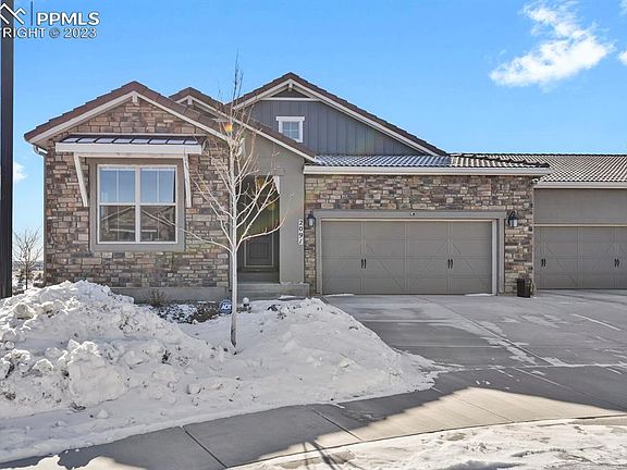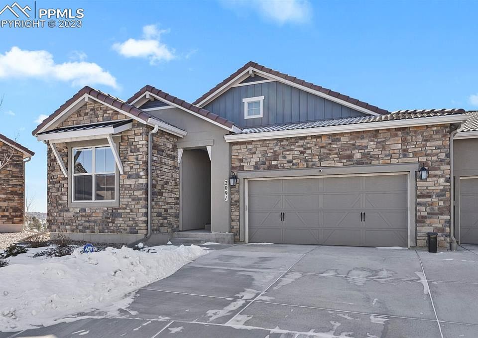 Don’t miss this stunning maintenance free patio home with breathtaking views of Pikes Peak and the front range in the highly desirable Flying Horse neighborhood. This home built in 2020 is better than new. On the main level, you’ll find a primary bedroom and bath, plus a secondary bedroom and bath. You’ll love the great room featuring a gourmet kitchen, dining room, and living room complete with a fireplace. You’ll experience beautiful mountain views from the large deck off the great room. A great place to enjoy your morning coffee or a barbeque gathering with friends and family. The laundry is conveniently located on the main level featuring cabinets for storage and a laundry sink. The walk-out basement is perfect for entertaining. It features a large family room with a gas fireplace and full wet bar. Two additional bedrooms and two full bathrooms round out the space. The extended garage is fully finished with a hot and cold-water faucet - a perfect workspace, room for extra storage or larger vehicles. The home has many custom features (over 145k in builder custom upgrades) to check out. It also has a gas line to the deck and has been upgraded with a whole house humidifier and smart home system. Whole house custom smart blinds are also included. Flying Horse offers many amenities including The Club at Flying Horse, restaurants, golf course, and parks. The neighborhood is conveniently located on the north side of Colorado Springs, Highway 83, I25 and the Air Force Academy. Don’t miss this one – Check it out today!