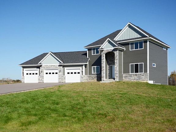 Beautiful towering 2 story on acreage in Elk River! Great elegant features abound in this 2 year old home. Amazing large kitchen with SS appliances, separate/formal dining and room in the kitchen at the breakfast bar. Great front entry, and large mudroom with bench and storage. Superb master suite with a corner fireplace, double closets, separate soaking tub and shower! Extra large angled 3 car garage! Full walkout basement unfinished for your special touches. This great 2 story in Elk River awaits your arrival.