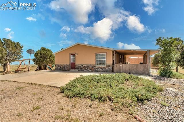 Welcome home to this incredible 3 bed 3 bath home sitting on 5.7 acres. This FULLY FENCED lot offers boundless amount of open space perfect for horses and other pets. When you walk in, you are greeted with a generous sized living room with a fireplace. Walk into the oversized eat in kitchen with tons of natural sunlight from the skylights and stainless steel appliances. Large master bedroom with an adjoining 5 pc master bathroom that boasts an oversize tub. The additional 2 bedrooms are a considerable sized. And all 3 bedrooms have significant sized walk in closets. Near schools and I25 for that quick commute. Huge detached garage as well as a 4 car detached carport. Storage trailer and playset are additional benefits to this true Country Living home. Come see and enjoy it!