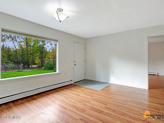 Charming ranch home in the heart of Chugiak! Updated kitchen w/white cabinetry, modern hardware, & ample counter space. Bright living room w/large windows plus a cozy family room w/brick fireplace. 3rd room-possible office/bedroom w/no closet. Spacious lot w/mature trees, apple trees, roses, raspberries, & strawberries. Private setting w/room to expand & easy commute to Anchorage or the Valley!