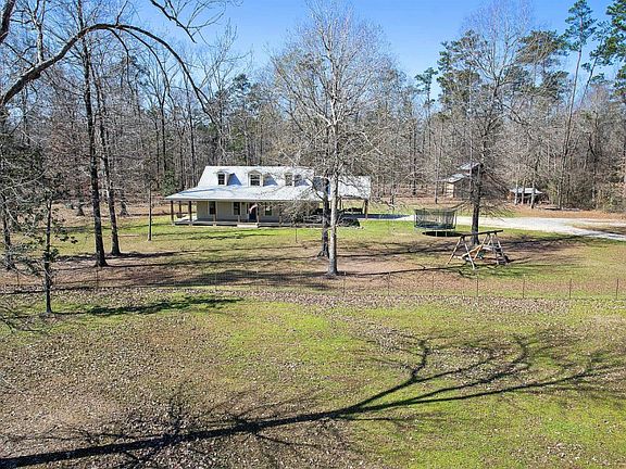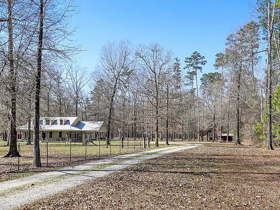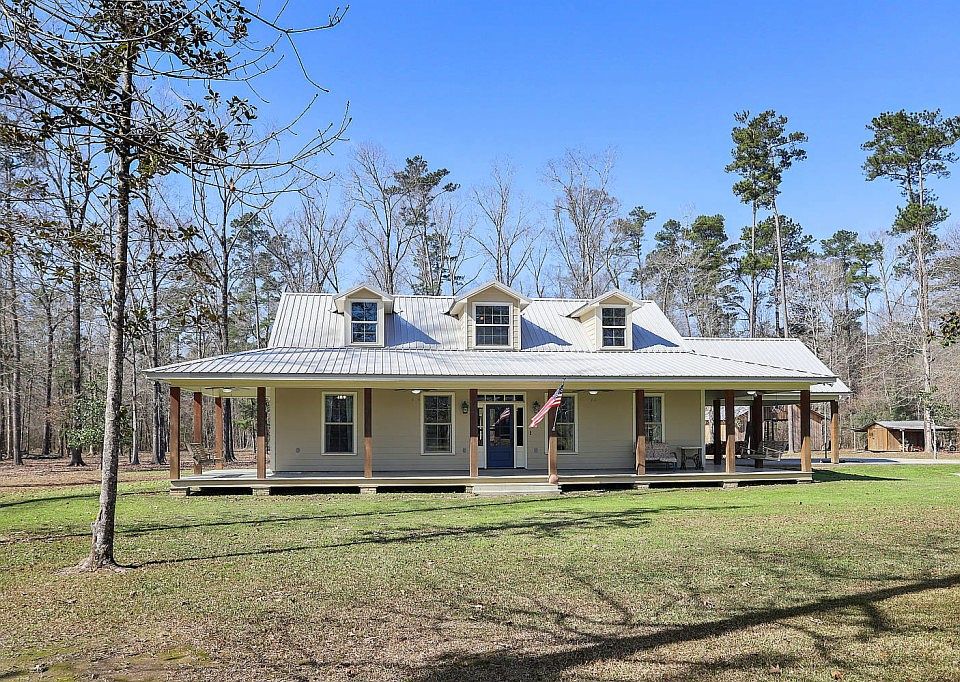 Immaculate, Custom Built 4 Bedroom, 2.5 bathroom home on 5.5 acres with an open and spacious split floor plan with plenty of room for entertaining, including sprawling outdoor space providing privacy and room to roam. The beautiful wrap around porch & metal roof welcomes you as you come up the driveway. Inside the home you will fall in love with the kitchen! Gorgeous Cypress wood cabinets all the way to the ceiling, brick paver flooring, stainless appliances, gas cooktop with stainless range, pot filler and brick backsplash behind the stove. The kitchen island has a prep sink and plenty of storage. The kitchen also has a large farmhouse sink, double wall oven, built in microwave, and wood beams over the entry ways. The living room has a wood burning fireplace with floor to ceiling brick. The tall windows on both sides of the fireplace overlook the back yard and patio and provide lots of natural light. In the laundry room you will find brick paver flooring, cabinet storage and hanging space. The large master bedroom and bathroom features a walk in shower, gorgeous clawfoot tub, double vanities and walk in closets. There is so much to love about this home! Call to schedule your showing today to see all that this home has to offer!