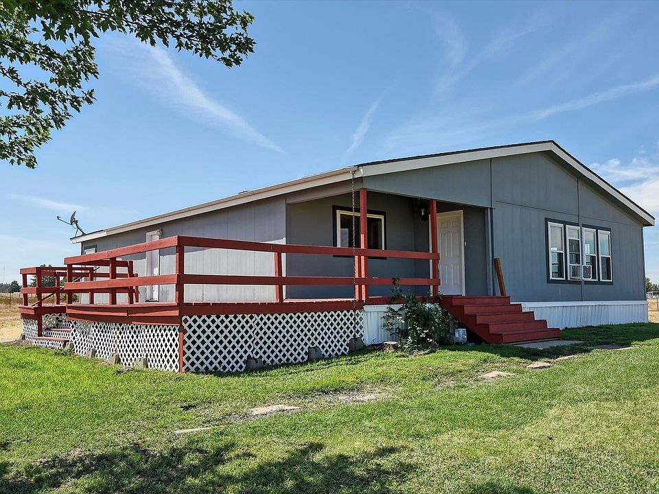 Charming Triple-Wide Home on 5 Fenced Acres with Modern Updates! Discover your dream home in this spacious triple-wide residence offering over 2,000 sq ft of inviting living space. The open-concept layout features soaring cathedral ceilings and a seamless flow between the kitchen and living room, ideal for entertaining family and friends. Retreat to the master bedroom, which boasts an en-suite bath with double sinks and a generously sized walk-in closet. Recent upgrades, including brand-new windows installed in 2023 and stylish LPV flooring throughout, enhance the home's modern appeal. Step outside to enjoy the expansive wrap-around deck, perfect for relaxation and taking in the beautiful territorial views. The property also includes an oversized shop/garage with an attached lean-to for RV parking, providing ample space for all your needs. Conveniently located near Fairchild Air Force Base, two casinos, and the amenities of Airway Heights, this home is just 15 minutes from Spokane.