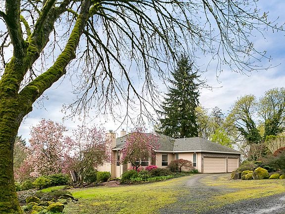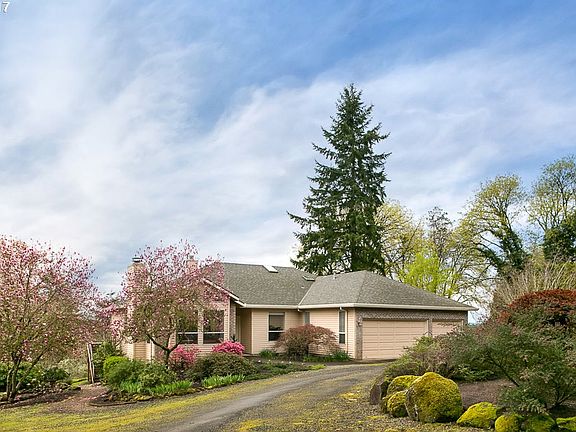Custom 1-level with fantastic territorial and Willamette River views. Beautifully maintained home has lots of light throughout with vaulted ceilings, skylights and open floor plan. Family room looks out to your 1,000 sq. ft. IPE deck that all overlooks the Willamette River. Amazing entertaining space! 3 car garage w/ heater & huge crawl space for storage + over 4 1/2 acres w/ berries & fruit trees. All just minutes from the city!
