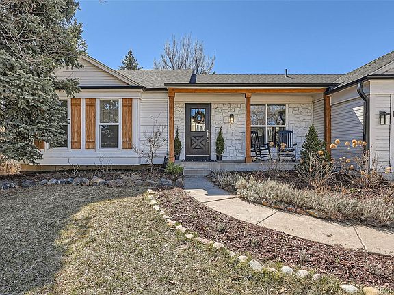 Welcome Home! This beautifully updated ranch-style gem is move-in ready and priced to sell! Nestled in a peaceful neighborhood with a charming "Mayberry" feel, you'll be just minutes from Pioneer Park, Sprouts, Saddle Rock Golf Course, Southlands Mall, Southeast Rec Center and Fieldhouse, Arapahoe Park Horse Track, and Aurora Reservoir. Step up to the picturesque front porch and enter into a warm and welcoming front room with vaulted ceilings. Make your way to the spacious living room, which features a wood-burning fireplace and impressive wall of built-in shelving. The updated kitchen offers ample cabinet and counter space, including a large island with additional storage. Adjacent to the kitchen is a charming eating area with a bay window that soaks in the sunlight. French doors open to your backyard oasis -- a true gardener's paradise! -- complete with a large paver patio, raised garden beds, solar accent lighting, and a mature apple tree. This oversized lot is fully landscaped and fenced, providing plenty of space for outdoor entertaining or relaxation. The main level also includes a hallway bathroom, two secondary bedrooms, and a primary bedroom with its own en suite bathroom. Warm, rich wood laminate flooring is laid throughout the main level. Downstairs, you'll find a spacious great room with high ceilings—perfect for a game room, playroom, or media space. The partially finished basement also includes a laundry area with a 1/2 bath that could easily be converted to a 3/4 bath, plus a non-conforming 4th bedroom that could make an ideal home theater, gym, or office. With a few minor finishing touches, this space is ready to be tailored to you. Located on a quiet circular street, this home offers a sense of privacy while still being close to everything. NEW ROOF coming soon! Recent updates include: fresh interior and exterior paint, windows, wood laminate flooring, electrical outlets, baseboards, countertops, and bathrooms. Best of all? There’s no HOA!