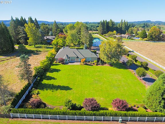 HORSE PROPERTY with several mountain views. Access to Mclver State Park horse trails along Clackamas River. Enjoy 24 hole disc golf, hiking and fishing. 48x60 shop with overhang, concrete floors, hay loft also includes 4 horse stalls. This exquisite home has 5 beds with 2 master suites, beautiful kitchen with SS Appliances, birch flooring, high ceilings and so much more. Click the Virtual link for 3D tour, it's a must see.