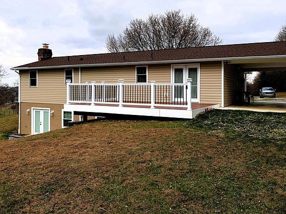 Beautifully remodeled ranch-style home located on a private, secluded lot at the end of a quiet lane in Boonsboro. This property shows like a brand-new home and offers over 2,100 square feet of finished living space across two levels. The main level features three bedrooms, two and a half bathrooms, an open floor plan, vaulted ceilings, exposed wood beams, and abundant natural light. A covered front porch and a spacious rear porch overlook scenic vistas, providing excellent outdoor living areas. The fully finished lower level adds valuable additional living space and includes a brick fireplace with a wood pellet stove insert, a brick mantle, a walkout entrance, and generous storage options. This layout is ideal for extended family, guests, or those who desire both one-level living and supplemental space. The property includes an attached carport, a detached two-car garage, and a separate storage shed. The setting is peaceful and private, yet still convenient to local amenities, schools, parks, and commuter routes. There is nothing to do here but move in and enjoy the comfort, privacy, and attractive updates this home offers.
