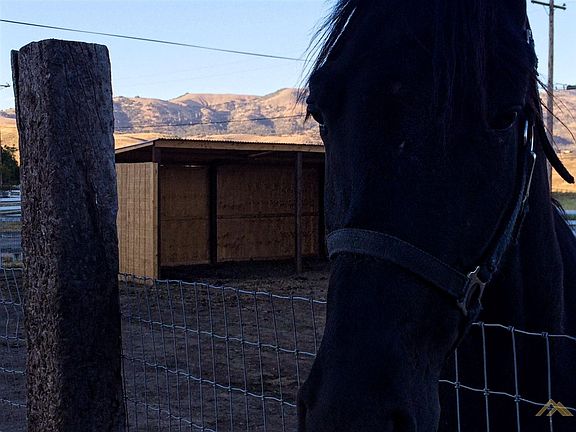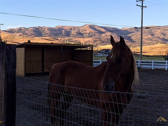 Beautifully remodeled horse property with amazing views on a 1.25 acre corner lot in beautiful Oak Knolls. Large open living space with step-down living room, newly installed high efficiency pellet stove, wood look porcelain tile flooring, kitchen with lots of storage and cabinet space, Laundry room has lots of cabinets and tank-less water heater. Large master suite, split wing. Covered patios, outbuildings, newer roof, plus fenced.