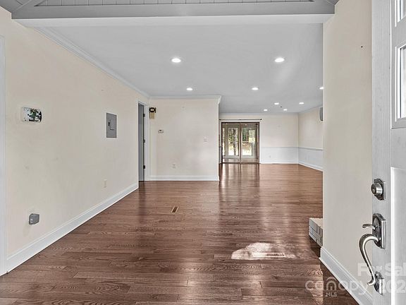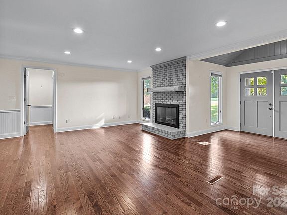 Discover the beauty of the Lake Norman area with this private oasis located in the heart of Cornelius. Nestled on a spacious, secluded lot, this property boasts an in-ground pool and an expansive, climate-controlled sunroom with vaulted ceilings. Designed for convenience, the home features single-level living with a thoughtful split-bedroom layout. Recent modern upgrades include stylishly renovated bathrooms, granite countertops in the kitchen, and a grand double-door entry. The charm continues with a cozy living room fireplace, rich wood flooring, and a side-load garage accessed via an extended driveway. Enjoy seasonal views of Lake Norman from the front of the home and the convenience of being just moments away from I-77, grocery stores, restaurants, shops, and water access.