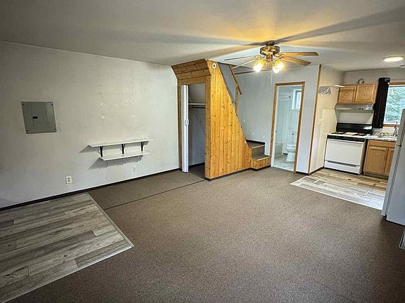 Location, Privacy, and Rustic Charm. Tucked away on a private drive, this charming two-story home sits on a serene, wooded 1.7-acre lot—offering both privacy and a true Alaskan feel. As you approach, the inviting covered front porch sets the tone for relaxation and quiet living. Step inside to a warm, cozy space with a solid layout and endless potential for customization. The main floor features a compact kitchen with a propane stove, a comfortable living area, and smart use of space throughout. Upstairs, a spacious full loft provides flexibility for an oversized bedroom, home office, or additional storage—maximizing every square foot. Whether you're envisioning a peaceful full-time retreat, a guest cabin, or a weekend getaway, this home offers the perfect foundation. Outside, enjoy a generous yard with an attached cold storage shed and an additional 8’ x 10’ shed for even more storage options. Recent upgrades add even more value: a brand-new well was installed in 2022, and the septic system was replaced in 2023. With natural surroundings and room to make it your own, this property is ready for its next chapter.