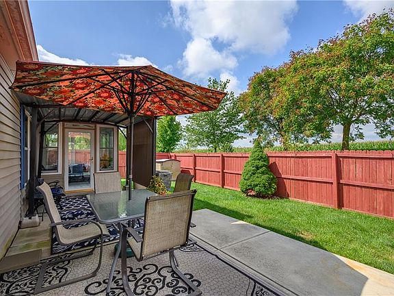 Welcome Home to this Beautifully updated Split 3 Bed floorplan, 2 Full Bth 1689 Sq/Ft Ranch in Heritage. Open Concept Kitchen/Living Area great space for entertaining and family time. Master Bath updated with double sinks, ceramic tile & walk-in shower. Tankless Gas Water Heater added 2017. The backyard space is so peaceful with its Four Seasons Room and covered Patio. Patio poured new 2018. Storage buildings, firepit stay w/home. No backyard neighbors as the home backs up to a cornfield. Kitchen has S/S appliances, granite countertops & updated cabinets. Storage cabinets in large Laundry Room can stay. New Flooring installed July in Hall bath and Bedroom 3. All new slider windows installed in Sunroom July 2022. Community Pool and Clubhouse