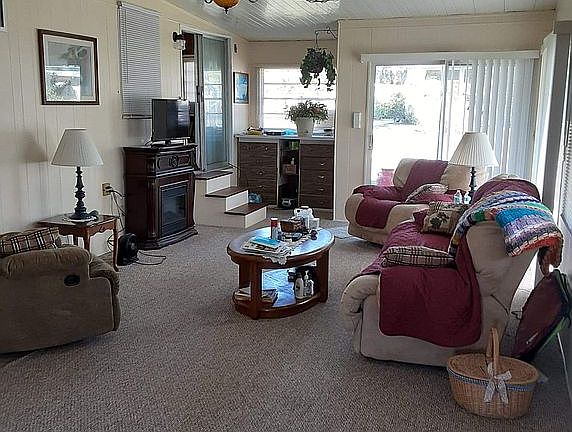 Corner lot located next to pool, recreation area, shuffleboard courts. Partially furnished living area with Murphy bed and bedroom with king size bed. Huge living area 15×35, 10×35 screen porch and 12×10 shed. Approximately 1,100 sq ft of of living space. The lot is privately owned, the buyer is also purchasing the lot that the unit is located on!