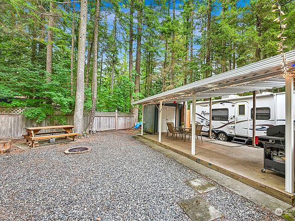 Discover paradise in this vacation community gem. Features an outdoor kitchen, detached bedroom with a half bath, and RV/camper space right next to your outdoor living area. Enjoy alfresco dining under the covered area. A versatile tool shed can be transformed into an extra bunkhouse. The fully fenced lot ensures privacy and security. Luxuriate in community amenities including an indoor year-round heated pool, clubhouse, trails, and parks. Minutes from Canada, perfectly nestled between Mt. Baker Skiing and the serene bay. Your dream escape, where adventure and relaxation harmonize.