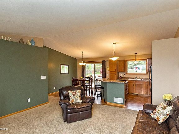 Comfortable four bedroom, two bath home featuring open floor plan with vaulted ceilings, kitchen island seating and large window above sink with views to private back yard, and dining with doors to deck. Spacious master features pass-thru bath with his & her walk-in closets, large lower level family room with lots of natural light, bath with ceramic and hard-surfaced vanity top. Two-stall garage.