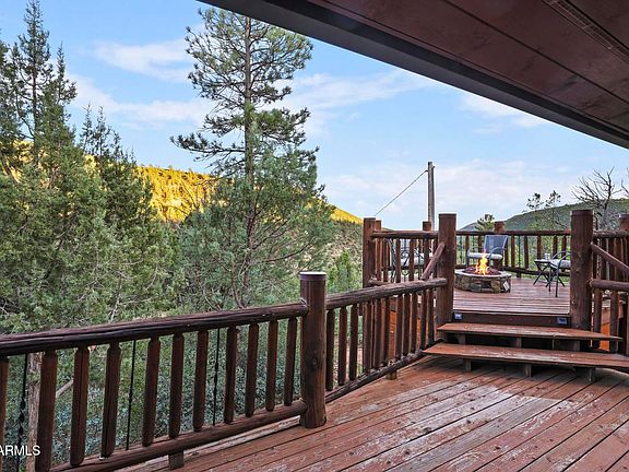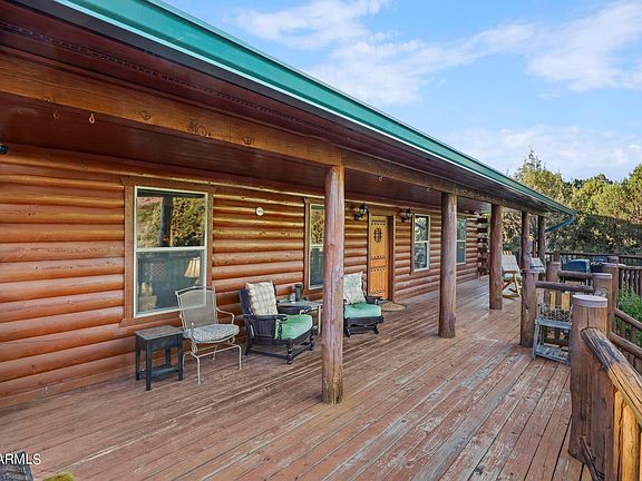 Elk Surprise Hillside Hideaway is a modern rustic log home offering luxury, comfort, and year-round access in a peaceful setting. Enjoy breathtaking mountain views, fresh air, and high-end amenities, perfect as a getaway or vacation rental. The open floor plan enhances gatherings, with Knotty Pine ceilings, stained concrete floors, cherry cabinetry, granite countertops, and a large kitchen island. The master suite features a travertine shower, dual vanities, and private toilet room. Outdoors, relax on 900+ sqft of deck space. Upgrades include a 5-stage water purification catchment system, central HVAC (2019), and a new water heater (2016). Fully furnished and ready for rental success. Sale contingent on purchasing adjacent lot at 2088 E Lance Dr. Upgrades include a 5-stage rainwater purification system, central HVAC (2019), and a new water heater (2016). Fully furnished and equipped for vacation rental success, this property offers exceptional value with both luxury and charm.