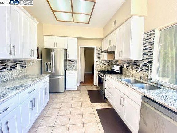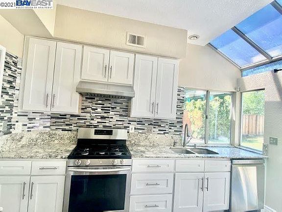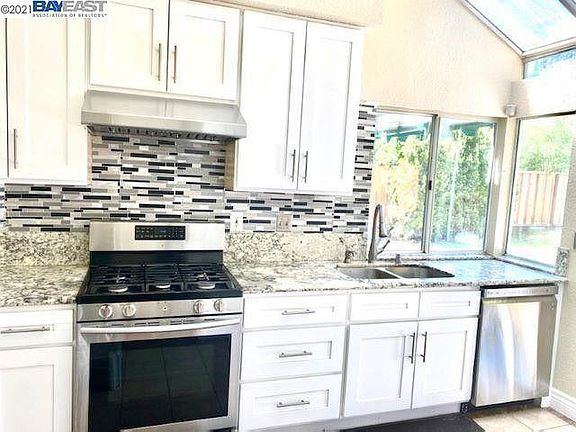 Wonderful Pleasanton Home Ready To Rent Entire kitchen is updated with new shaker style cabinets, new countertop, updated tile flooring, all stainless steel appliances, additional hood vent and new paint. Living room and dining area has updated engineered wood flooring, fresh paint, updated lighting in the dining room etc. All three full bathrooms are updated with new countertops, cabinets, toilets, shower handles new mirrors, lighting along with a brand new washer & dryer. Downstairs bedroom has fresh new paint, new designer wallpaper, updated flooring All built-in cabinets in all bedrooms and in the garage as well. Renters pay for utilities. No Smoking. Rent due on 1st of the month.