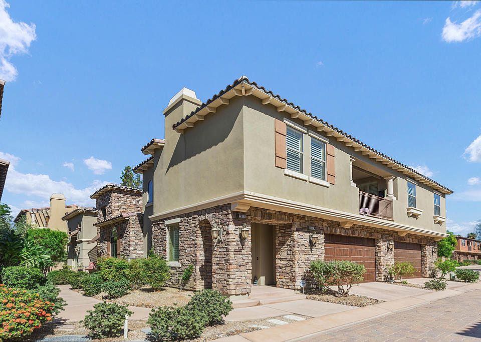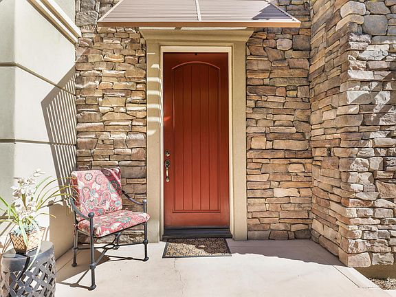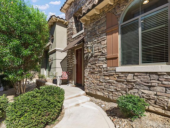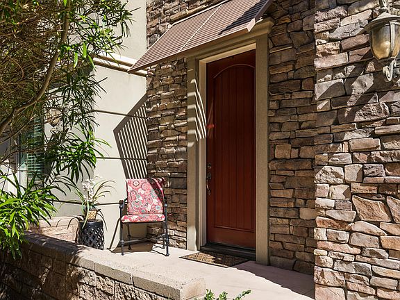 Light, bright, beautiful and coveted single story in gorgeous, gated Brava Community. Tuscan inspired architecture with cobblestone streets, stone arches, cypress trees and tile roofs. 2 BD, 2BA w/ convertible den/office, this 'Spotlight' model is 1867 sq. ft. featuring a large outdoor patio showcasing a beautiful double-sided stone fireplace, towering 18 ft. ceilings, granite countertops and an open floor plan. Direct access to the two-car garage thru the laundry room. The Primary suite has a large walk-in closet, dual sink vanity, walk-in shower & soaking tub. This home has been upgraded with custom made barn doors for the den/3rd bedroom, new garage door with WIFI opener/camera, New TRANE 700 speed HVAC unit was installed July 2021 with a 12-year warranty, 4 Nest smoke/Co2 detectors, and sliding glass doors in the second bathroom. The HOA includes: wifi, cable, landscaping, 2 pools/spas, gym, business center, gated access and security patrol. Located near shopping, wonderful dining on El Paseo & Eisenhower health center.