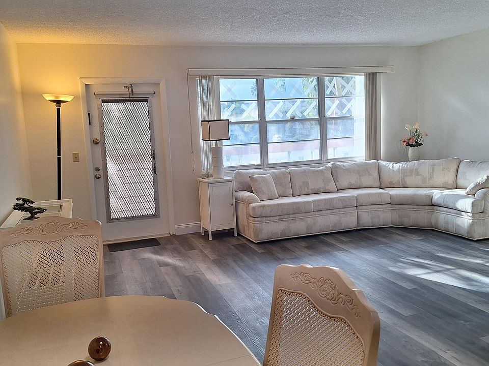 Be the first to live in this totally redone 1 bedroom 1.5 bathroom condo on the second floor in Wolverton! Amazing renovations were just completed featuring brand new: laminate wood-look flooring, electric panel, a/c, kitchen with stainless steel apppliances and recessed lighting, bathrooms with stunning tile. Enjoy the tranquil view from the back lanai and majestic sunset from the front. Walking distance to houses of worship and the fantastic clubhouse. This 55+ community offers dynamic activities and boasts a state of the art gym, outdoor and indoor pools, art workshop, billiard room, tennis and pickle ball courts, library and so much more! Can be rented immediately.