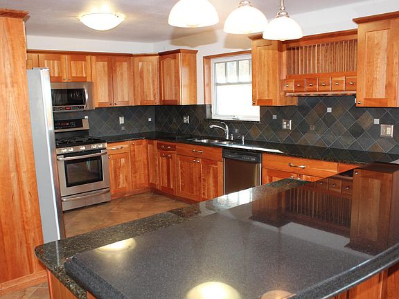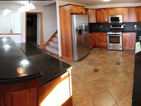 Beautiful home with MIL! Open floor plan, kitchen with natural cherry cabinetry, soft close drawers, granite countertops, breakfast bar w/pendant lighting, and stainless appliances. Fully fenced lot with paved RV parking on both sides of house! Sauna with rinse-off shower! Massive garage w/workbench, compressor that stays, and 220v outlet. Large wrap-around deck. Private, covered MIL entrance.