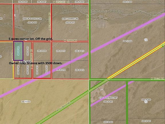 Off the grid corner lot not far off of pavement. Easy access just of the Historic Route 66. It's a great time to own a piece of the Arizona desert. Lots of trails in most directions for off roading, horseback riding, hiking and mountain biking. Drive by and view anytime. No hoa. No timeframe for use. Use for camping on those long weekends. Owner may finance with 3500 down at 8% up to 18 months. Owner/broker.