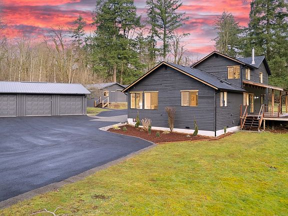 Must See! Nestled amidst the tranquil beauty of the Pacific Northwest on 4.74 acres, this retreat offers the epitome of modern comfort and outdoor living. Vaulted ceilings adorn the spacious interior, while the expansive kitchen serves as the heart of the home, ideal for culinary adventures and entertaining guests. Additionally, a dedicated theater/entertainment room provides the perfect space for movie nights and gatherings. With a 3-car garage, workshop, and sprawling deck, endless outdoor opportunities for recreation and relaxation. Immerse yourself in the natural splendor of the Pacific Northwest while enjoying the luxurious amenities of this idyllic retreat.
