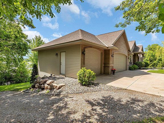 Executive Home on Big Lake in Richmond! This one-owner, 4 bed, 4 bath, custom walk-out rambler is situated on a quiet, dead-end road and cul-de-sac on 1.25 acres and boasts 275' of Big Lake shoreline. A stunning setting inside and out, the home welcomes you with sweeping lake views, and a large, comfortable layout. The main floor boasts a grand entrance, a large main floor living space w/gas fireplace, a beautiful lakeside kitchen with stainless steel appliances, granite countertops, and a huge center island, an office, 1/2 bath, laundry, and two large bedrooms each with a private bathroom. The lower level hosts two additional bedrooms, family room, an exercise room, full bath, and workshop/tuck under garage. OPEN HOUSE 9am-1 PM!
