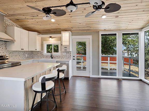 Keep it simple at this peaceful, unique, centrally located private home and getaway. Completely rebuilt from the floor up, a beautiful home with a cozy modern lux vibe. From the wooden cabin-like ceiling, to the warm wooden floors, farmhouse bathroom with swinging shower door, full rock-wall kitchen, farmhouse kitchen sink, stainless steel appliances, and floor to ceiling windows in the living-dining room this home offers grand-feeling with natural sunlight and the feel of the outdoors. This property is the perfect 2-bedroom home or getaway for anyone wanting to live or visit central Arizona, neighboring state land. Close to the Arizona's most popular destinations this property is 5 minutes from the I-17, 30 min to Sedona, 30 min to Prescott, 60 min to Flagstaff, 60 min to Phoenix Intern.