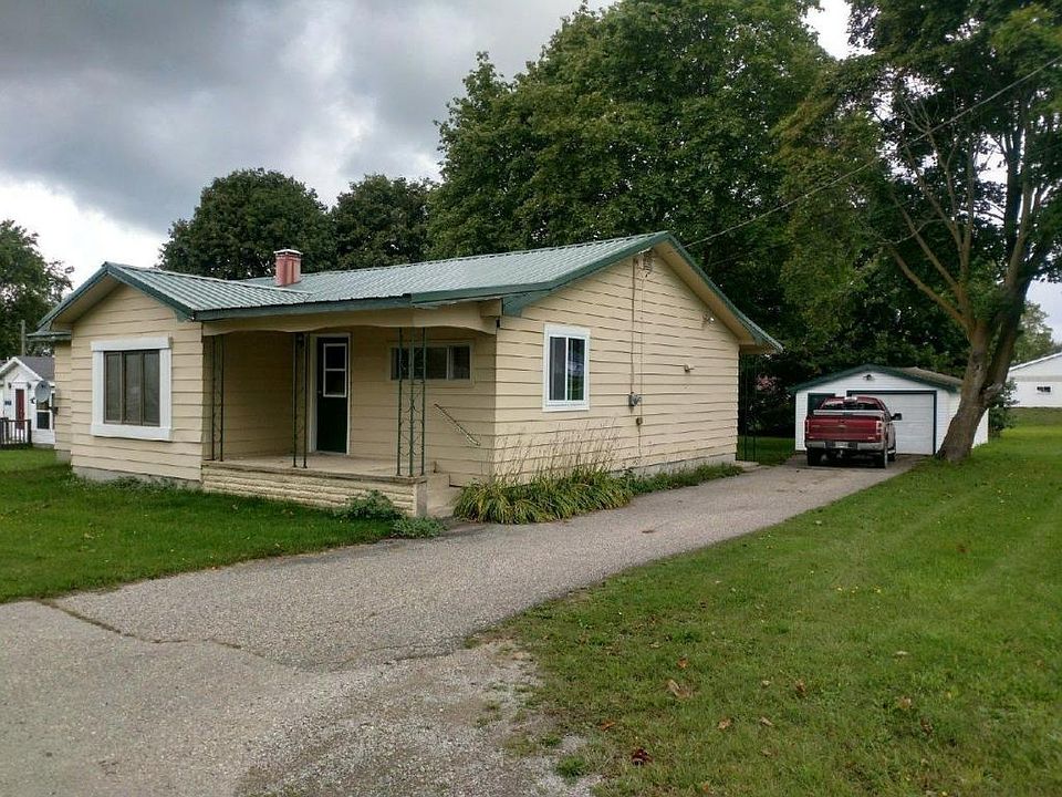 3 Bedrooms-1 Bath home of 1600 square feet +/-, a newer metal roof, a 1.5 car detached garage, and covered front and back porches. Newer exterior and some interior doors, drywall, most windows, some plumbing fixtures, and new siding on the garage.