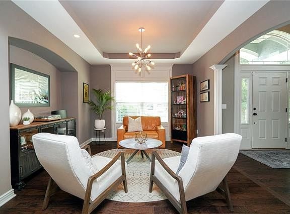 PICTURE PERFECT 5 bedroom home w/open floor plan! Meticulously maintained. Beautiful hardwoods throughout main level. Kitchen features large island, granite, stainless appliances & large walk-in pantry. Spacious master suite boasts true spa-shower w/multiple body sprays. Lower level recently finished with rec room, wet bar, 5th bedroom & bath. Large screened-in porch walks out to stained patio w/cozy fire pit. Plenty of room in the garage w/utility sink & grocery pass thru to walk-in pantry. 3 zone high efficiency HVAC system. New water heater. Fresh stain on screened-in patio & playhouse. Recently improved landscaping on sides & back of house. Whole house humidity control system. In-ground sprinkler system. Award winning DeSoto schools. Mature evergreens in backyard provide privacy and shade to relax or play!
