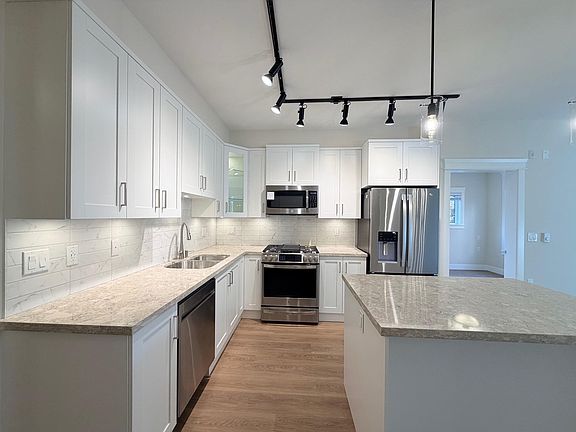 Ground floor unitBig patioGourmet kitchen with islandStainless steel appliancesQuartz countertopsWhite cabinets