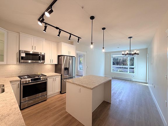 Assignment of the Contract. Kensington Gate build by highly desirable Quadra Homes!!! 2 Bed 2 Bath inside West facing Ground floor Unit sized 882sf with Big Patio! Best location in Willoughby. Quality product! Electric Baseboard with Heat Hump. Extra-large rollup locker and two Parkings are included! Gourmet kitchen with Island, stainless steel appliances including, 5 burner gas cooktops with convection oven, quartz countertops and white cabinets. Heated tile floors in the bathroom, 9 ft high ceilings. Balcony with BBQ gas hook up. Underground parking space with rough in EV Ready charger. Walking distance to great schools and shopping. Completing in Jan 2026 but available to change the date for your date! Call for more information.