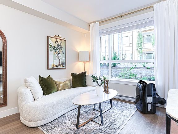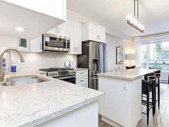 Kensington Gate, by Quadra Homes is a remarkable development , that stands out as a premium choice for those seeking a high-quality living experience. This TOP Floor Jr 2 bed/1 bath suite w large balcony, boasts impressive features such as A/C, 10-foot ceilings, oversized Low E windows, a high quality S/S appliance package w Gas range & Gas BBQ outlet on the balcony. The attention to detail extends to the interiors w shaker cabinetry, vinyl plank flooring, Quartz Counters & Bath w heated tile floors. Outstanding acoustic system between suites & floors. Nestled in a peaceful location, close to schools, parks, shopping, Rest. & easy access to the Freeway. An ideal location w luxurious features and great amenities. A perfect blend of comfort, convenience & style!