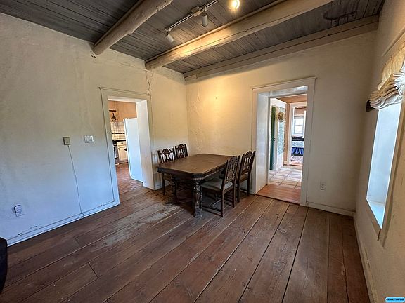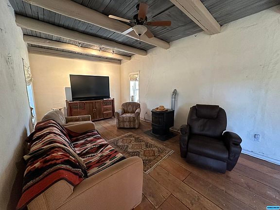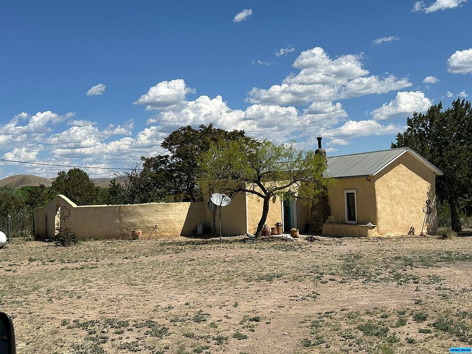 One of a kind 4 acre property with 3 buildings. Main home is a 1bd/1ba adobe with private courtyard in back and screen porch in front plus fenced dog area on the side. Second building is an abode with large covered porch that could be office, studio or 2nd bedroom. Third building is 1180 square foot metal building that is a finished open floor plan with kitchenette area, storage room and small bedroom. It has an outdoor shower in the private courtyard. All buildings have pellet stove heating. The property has native landscaping plus several fruit trees. Beautiful mountain views out back and scenic views towards the Mimbres River out front. This lovely acreage with beautiful buildings has awesome potential.