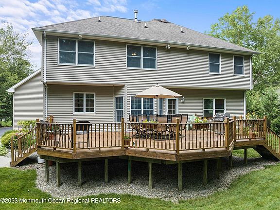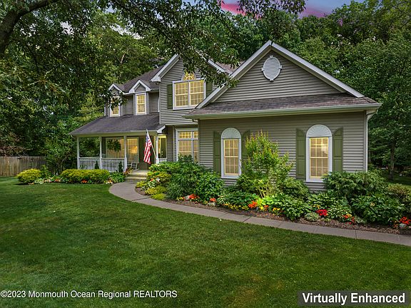 Under Contract Continue to Show. Meticulously maintained 4 BR, 2.5 Bath Center Hall Colonial w/ FULL FINISHED BASEMENT in a wonderful neighborhood in Wall Twp. Welcome your guests from a large inviting Front Porch. Many features include; Hardwood Floors. Open Floor Plan, Dining Room, Family Room, Center Island Kitchen w/Eat In Area, Four Generous Sized Bedrooms on Second Floor, including a sitting room & Primary bedroom suite w/ Trey ceiling, Large Walk in Closet and Master Bath w/jettied tub, large Finished Basement w/ Rec Room and exercise Room and great space for entertaining, The rear yard has a very large Deck perfect for large gatherings overlooking woods for privacy. Minutes to Jersey Shore beaches and Route 35 shopping and local highways great for commuters.